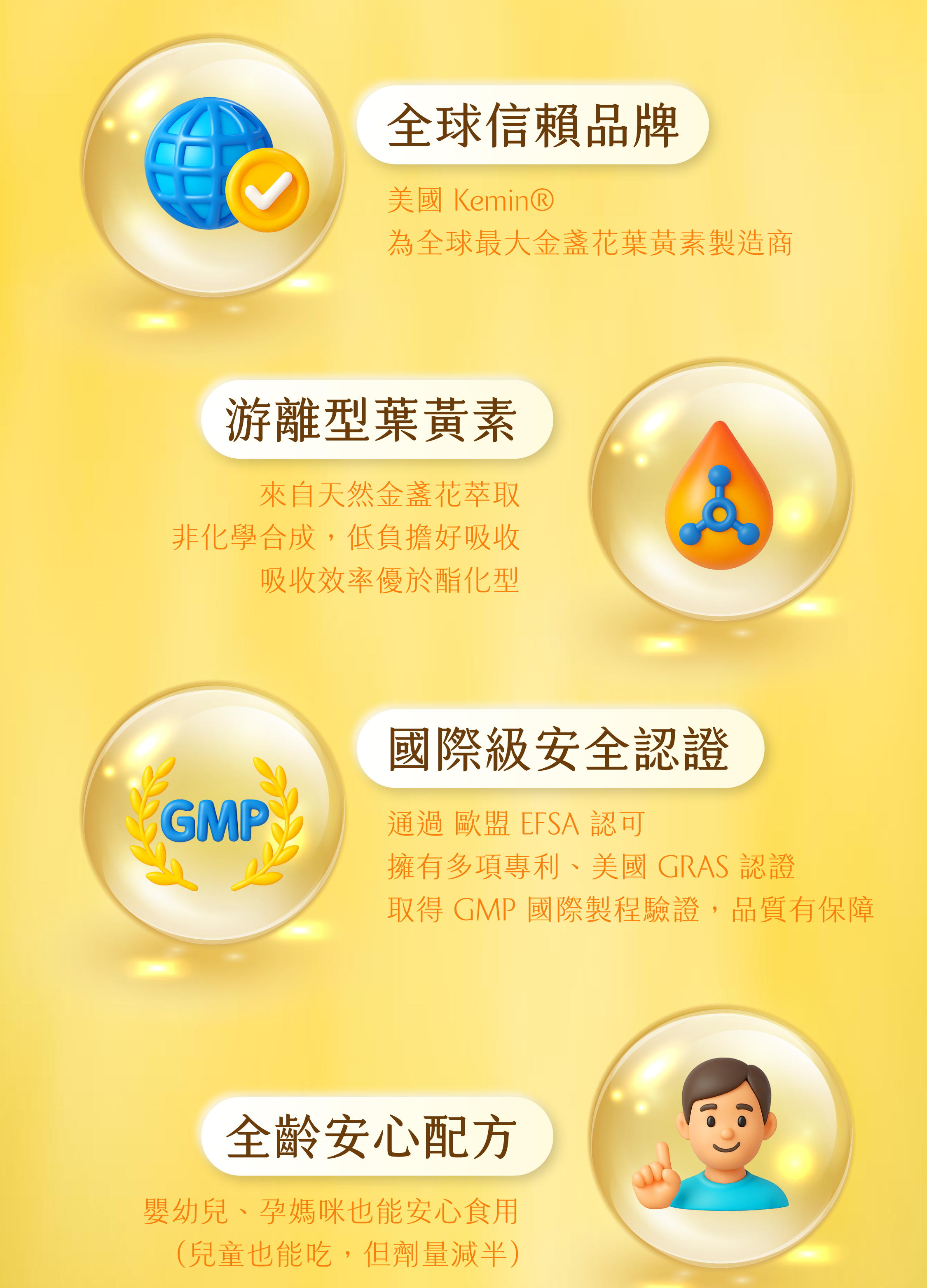 專利支持:IPPS-1 超級綠蜂膠、游離型葉黃素與玉米黃素(吸收率佳)
