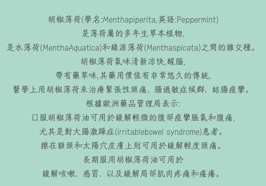 成份:薄荷油、L-簿荷腦、百里香料油、明膠、甘油